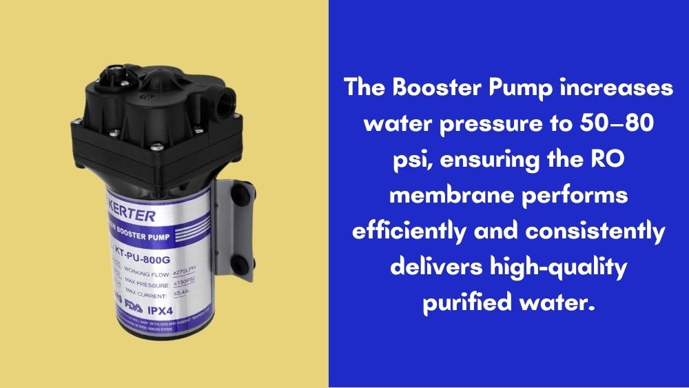 - A booster pump increases water pressure to help the RO membrane perform efficiently.